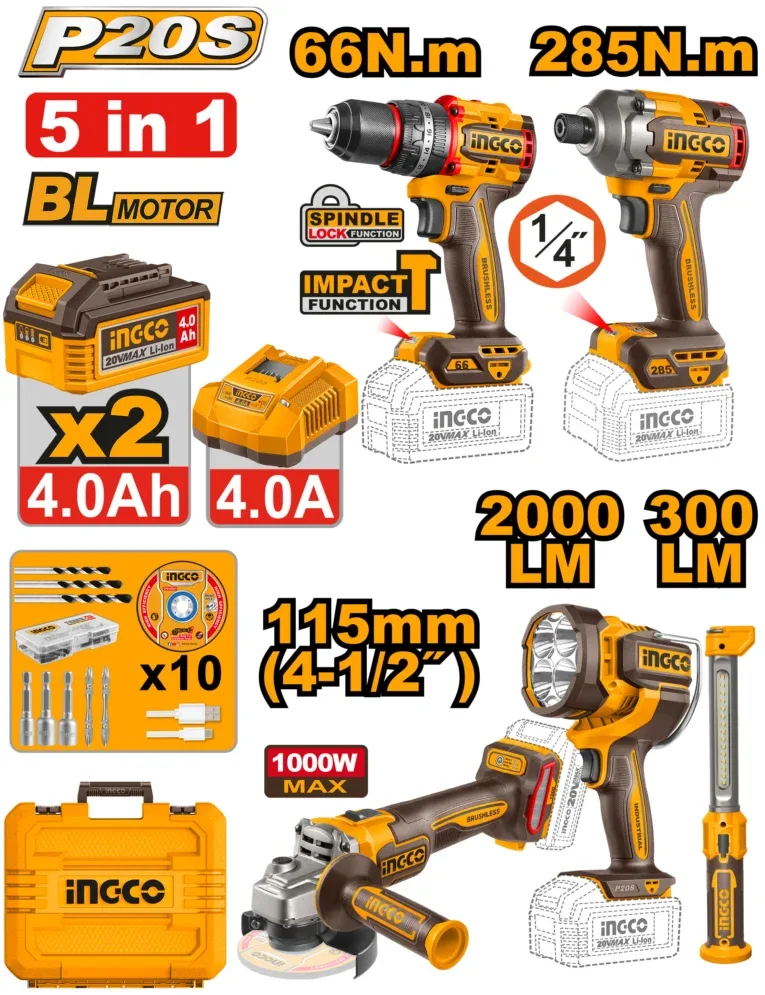 Ingco Cordless 5 pcs combo kit – COSLI250692